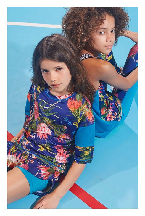 Olympia er et par blomstrede leggings med asymetrisk blå detalje ned langs det ene ben, samt en elastisk talje, som har printet tekst. Disse sports leggings sikrer den helt rette comfort og fleksibilitet og sørger for, at der ikke er nogen hindring for bevægeligheden. Olympia er en del af Molo's nye sportskollektion, som er med til at binde mode og sport tættere sammen. Kombiner Olympia med en af Molo's sports toppe for en komplet sporty look. Molo’s sportskollektion er fremstillet med en unik high-performance teknologi kaldet HeiQ Smart Temp, der understøtter kroppens naturlige nedkøling. • Kølefunktionen aktiveres, når du er varm og svedig • Kølefunktionen deaktiveres, når kroppen er nedkølet. • HeiQ Smart Temp sikrer optimal komfort og ydeevne • Testet uafhængigt som sikkert for huden •