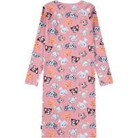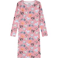 Lyserød natkjole i økologisk bomuld med print af søde dyr. Kjolen er løs med lange ærmer og en rund halsudskæring. Den bløde bomuld er behagelig mod kroppen og giver masser af plads til bevægelse.
