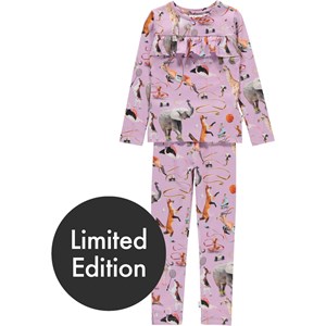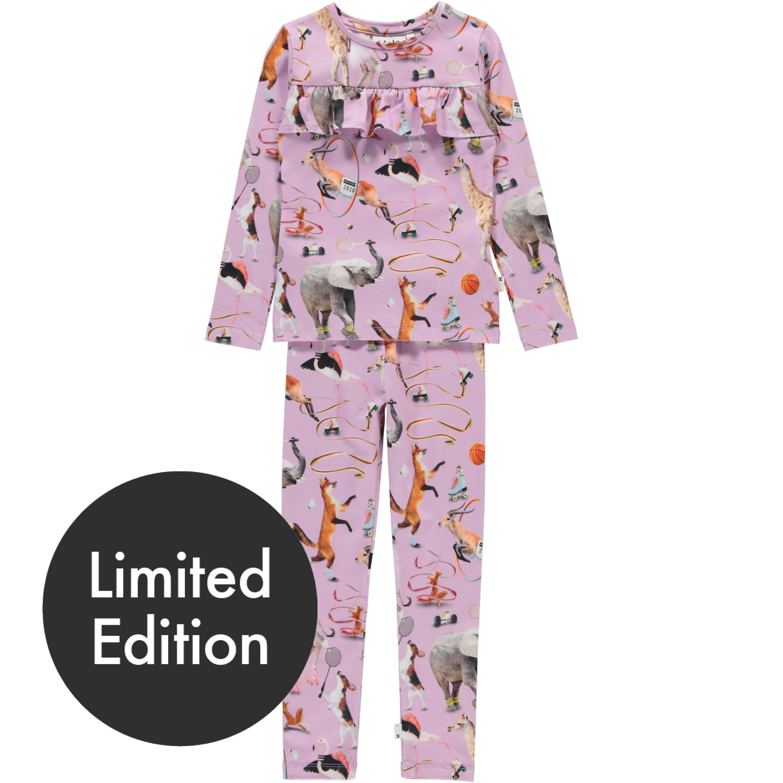 To-delt natsæt fremstillet i blød økologisk bomuld med rund halsudskæring og elastik i taljen.