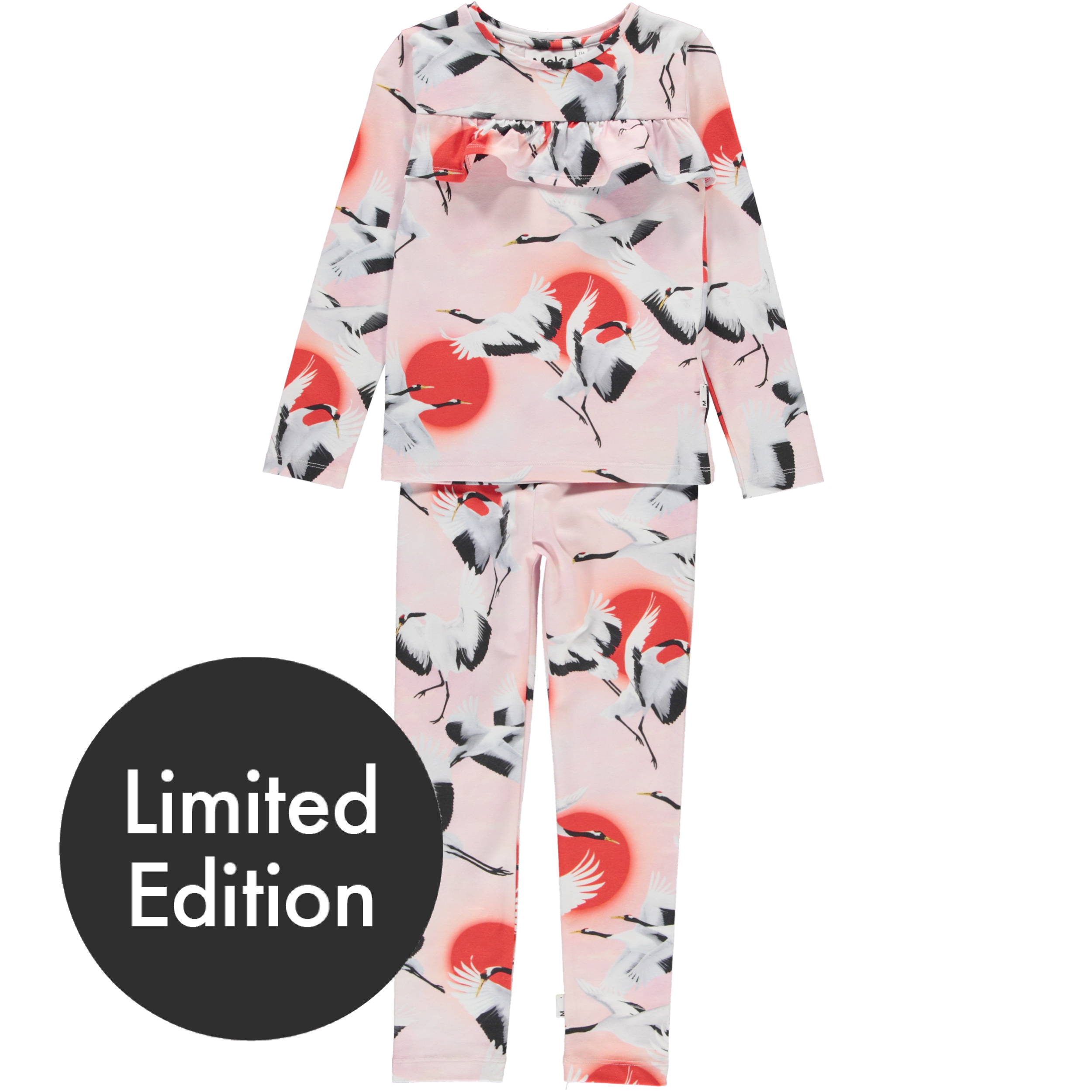 To-delt natsæt fremstillet i blød økologisk bomuld med rund halsudskæring og elastik i taljen.