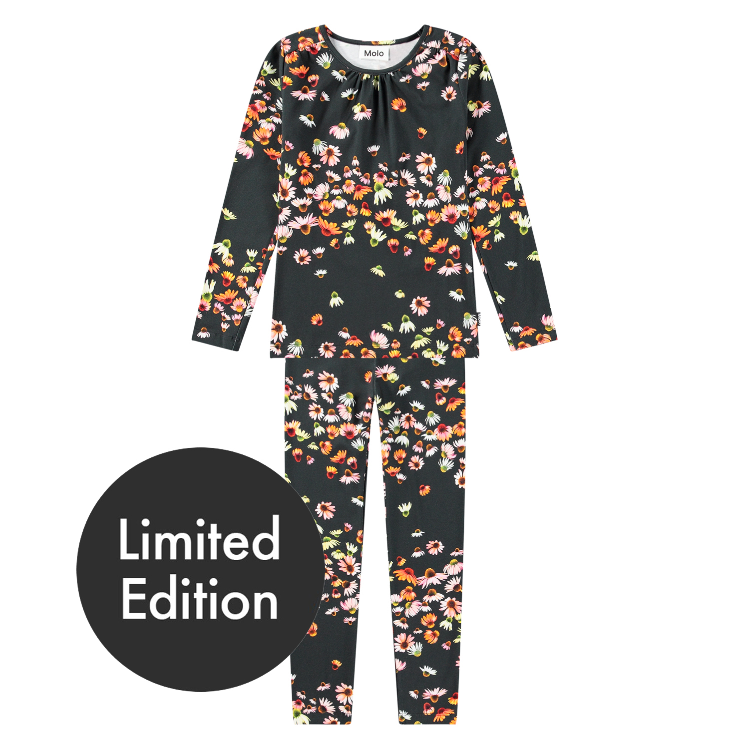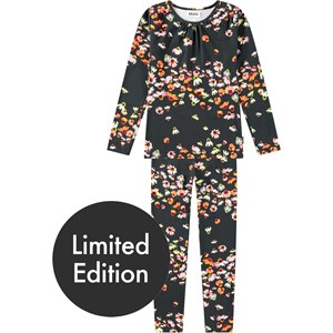 To-delt natsæt fremstillet i blød økologisk bomuld med rund halsudskæring og elastik i taljen.