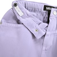 Lyslilla nederdel i bomuld- og viskoseblanding med matchende stikninger. Flotte syninger foran, to sidelommer og bæltestropper, samt justerbar talje.