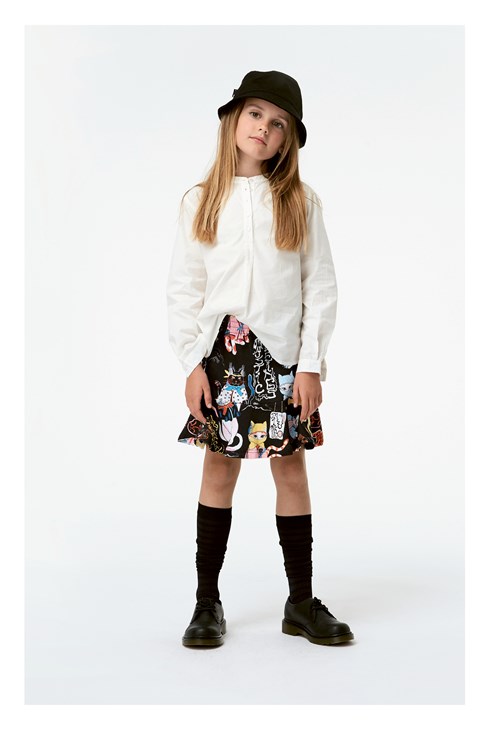 Barbera er en sort nederdel med katte ninja print. Nederdelen har elastisk talje, som giver en behagelig pasform.