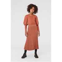 Betrice er en lang pliseret nederdel med glitter i en flot kobber farve. Nederdelen har en elastisk talje.