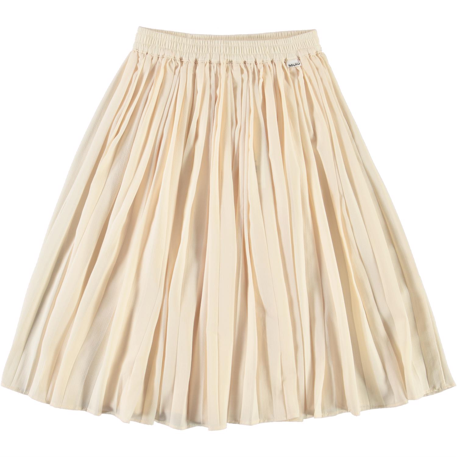 Becky er en lys gul pliseret nederdel med elastisk talje. Nederdelen er let og luftig og falder flot.