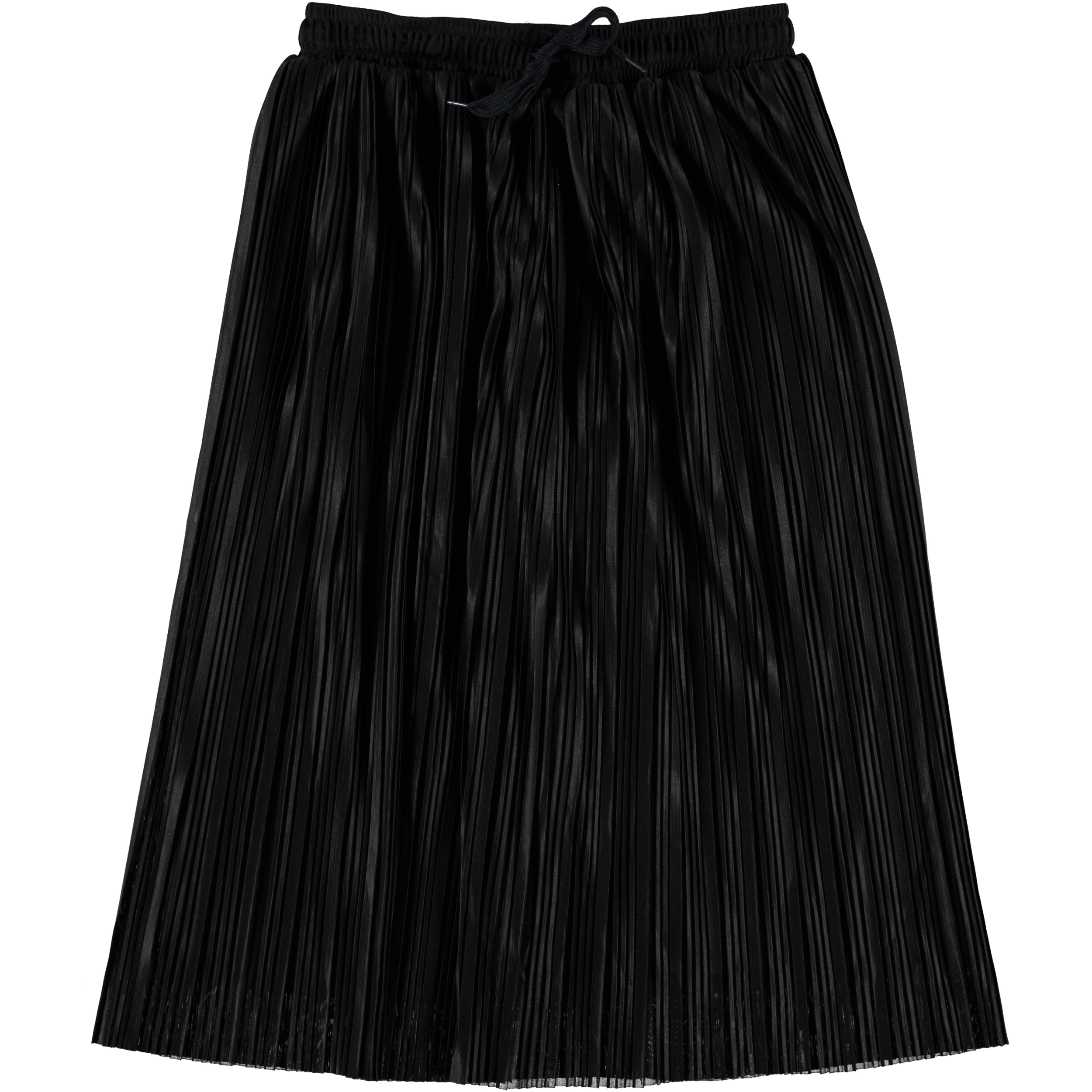 Becky er en pliseret sort nederdel med god længde og bindebånd i taljen.