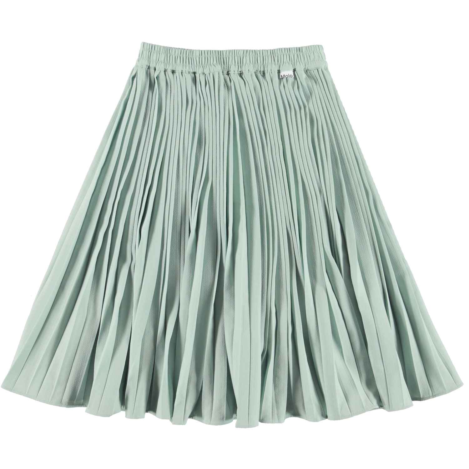Becky er en pliseret nederdel i mint grøn. Nederdelen har en elastisk talje.