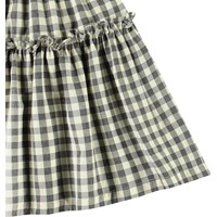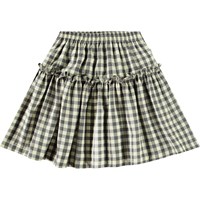 Fin nederdel i sort/beige tern. Nederdel har elastisk talje, er rundt skåret og har et påsyet skørt med flæsekant.