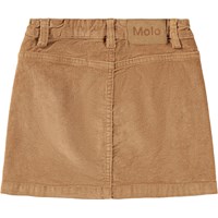 Lysebrun nederdel i bomuldsfløjl med knapper som lukning. Nederdelen når til midt på låret og har en talje med bæltestropper samt forlommer. Det flotte snit inkluderer detaljerede syninger, der løber fra lommerne og ned.