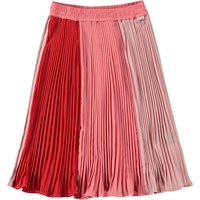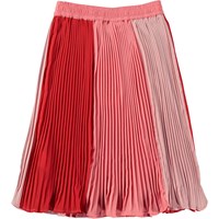 Multifarvet plisseret nederdel, i lyserød, koral og røde farver. Denne nederdel er fremstillet i polyester, der gør de smukke plisseringer mulige. Den har elastik i taljen, så den er let at få af og på.
