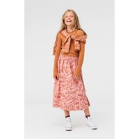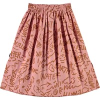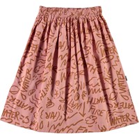 Bettina er en lyserød lang bomulds nederdel med print af de fire elementer i brun. Nederdelen har en elastisk talje, som gør at nederdelen er rigtig behagelig at have på.