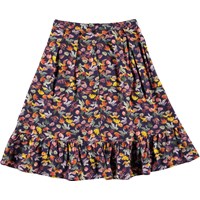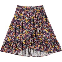 Blondie er en lilla nederdel med print af farverige blade. Nederdelen har slå om effekt og lynlås lukning bagpå.