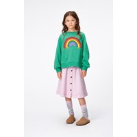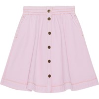 Lyserød knælang nederdel i en blød bomuld og viskose blanding. Nederdelen har elastik i taljen, lommer i sidesømmen samt kobberfarvet trykknapper fortil. Nederdelen er rundskåret og gør at den falder flot.