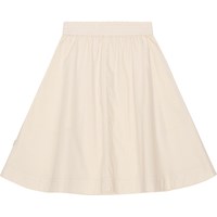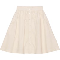 Sandfarvede nederdel i økologisk bomuld. Nederdelen har elastik i taljen, dekorativ stolpelukning med pynteknapper samt lommer i sidesømmen med påsyet lommeklap.