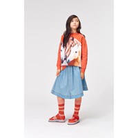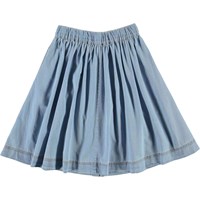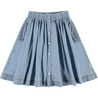 Bolette er en lyseblå denim nederdel med knappelukning på fronten og frontlommer. Nederdelen har en elastisk talje