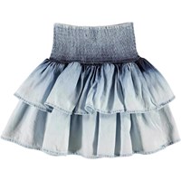 Bonita er en bleget denim nederdel med lag på lag effekt og hvor den øverste del er i smock.