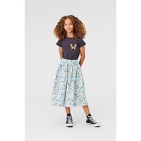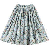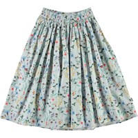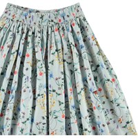 Bree er en lang poplin bomulds nederdel i lyseblå med print af vilde blomster og insekter. Nederdelen har en flot volumen og elastisk talje, som gør den rigtig behagelig at have på.