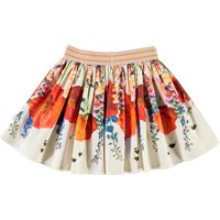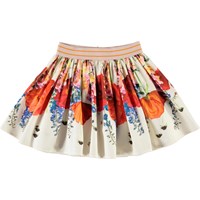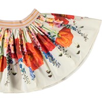 Brenda er en let bomulds nederdel med flot blomsterprint og stribet elastisk talje i rosa og orange.