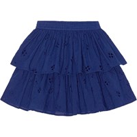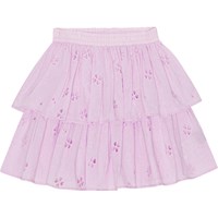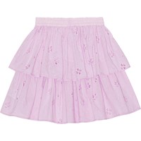 Pastel lilla broderie anglaise nederdel i økologisk bomuld. Nederdelen er mellemlang og har to skørter i forskellige længder samt elastik i taljen, der gør den behagelig at have på.