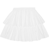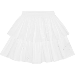 Hvid broderie anglaise nederdel i økologisk bomuld. Nederdelen er mellemlang og har to skørter i forskellige længder samt elastik i taljen, der gør den behagelig at have på.