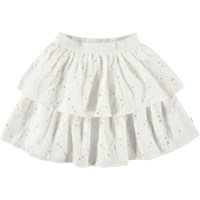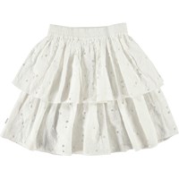 Brigitte er en hvid nederdel i to lag med elastik i taljen. Nededelen er lavet i broderie anglaise, og kan kombineres med toppen Ritza, for et komplet outfit.