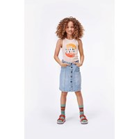 Britney er en denim nederdel med knappelukning på fronten. Nederdelen har bæltestropper og lommer på fronten.