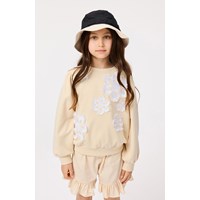 Beige shorts i økologisk bomuldschambrey. Løs pasform med brede flæsekanter.