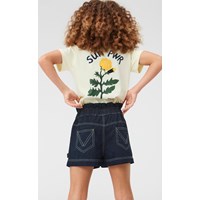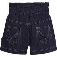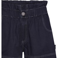 Adara er et par mørkeblå denim shorts med lyse syninger. Shortsene er højtaljede med fin kant for oven.