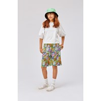 Adian er et par knælange shorts med vide ben, fremstillet i økologisk bomuld. Shortsene har elastisk talje og et multifarvet allover blomsterprint.