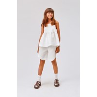 Alive er et par hvide, højtaljede shorts i 100% bølget bomuld. Shortsene har elastisk talje, og et fint dyppende snit ved knæet. For et komplet outfit, kombinér med matchende top, Rani.