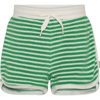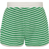 Aliya er et par grøn og hvid stribede shorts i froté. Shortsene har en hvid kant i livet med bindebånd.