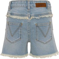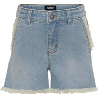 Alvira er et par blå denim shorts med frynse detaljer. Shortsene er fremstillet af økologisk bomuld.