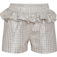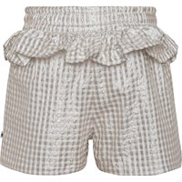 Audie er et par shorts i gyldne tern. Shortsene har et feminint peplum skørt og elastisk talje.