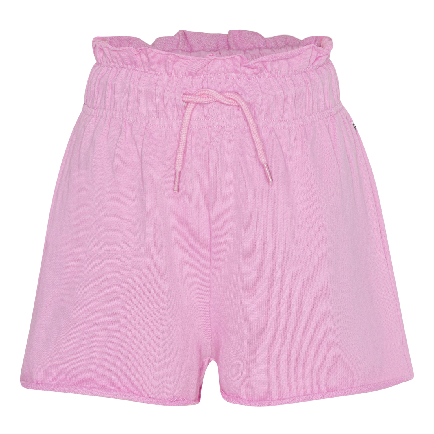 Ayla er par rosa shorts i blødt økologisk bomuld. Shortsene har en løs pasform, samt høj talje med bindebånd. Kombiner shortsene med den matchende sweatshirt.