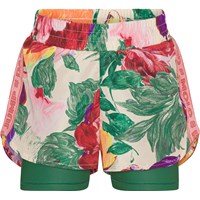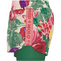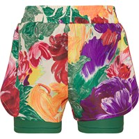 Sportsshorts med print af blomstermotiv i dybe farver med synligt penselstrøg. Shortsene er to-delte med ensfarvede grønne shorts inderst. Disse shorts sikrer den helt rette comfort og fleksibilitet og sørger for, at der ikke er nogen hindring for bevægeligheden. Molo’s sportskollektion er fremstillet med en unik high-performance teknologi kaldet HeiQ Smart Temp, der understøtter kroppens naturlige nedkøling. Kølefunktionen aktiveres, når du er varm og svedig. Kølefunktionen deaktiveres, når kroppen er nedkølet. HeiQ Smart Temp sikrer optimal komfort og ydeevne. Testet uafhængigt som sikkert for huden. .