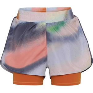Omari er et par todelte træningsshorts, hvor yder shortsene har fint spray-print i mange farver, mens de inderste shorts er orange. Omari sikrer den helt rette komfort og fleksibilitet og sørger for, at der ikke er nogen hindring for bevægeligheden. Disse shorts er en del af Molo's sportskollektion, som er med til at binde mode og sport tættere sammen. Kombiner Omari med en af Molo's toppe for en komplet sporty look. Molo’s sportskollektion er fremstillet med en unik high-performance teknologi kaldet HeiQ Smart Temp, der understøtter kroppens naturlige nedkøling. Køle funktionen aktiveres, når du er varm og svedig. Kølefunktionen deaktiveres, når kroppen er nedkølet. HeiQ Smart Temp sikrer optimal komfort og ydeevne. Testet uafhængigt som sikkert for huden. .