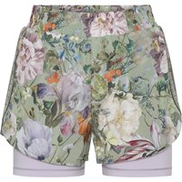 Omari er et par to-delte sports shorts, hvor yder shortsene er lysegrønne med blomster print, mens de inderste er ensfarvede lyselilla. Omari sikrer den helt rette comfort og fleksibilitet og sørger for, at der ikke er nogen hindring for bevægeligheden. Disse shorts er en del af Molo's sportskollektion, som er med til at binde mode og sport tættere sammen. Kombiner Omari med en af Molo's toppe for en komplet sporty look. Molo’s sportskollektion er fremstillet med en unik high-performance teknologi kaldet HeiQ Smart Temp, der understøtter kroppens naturlige nedkøling. Kølefunktionen aktiveres, når du er varm og svedig. Kølefunktionen deaktiveres, når kroppen er nedkølet. HeiQ Smart Temp sikrer optimal komfort og ydeevne. Testet uafhængigt som sikkert for huden. .