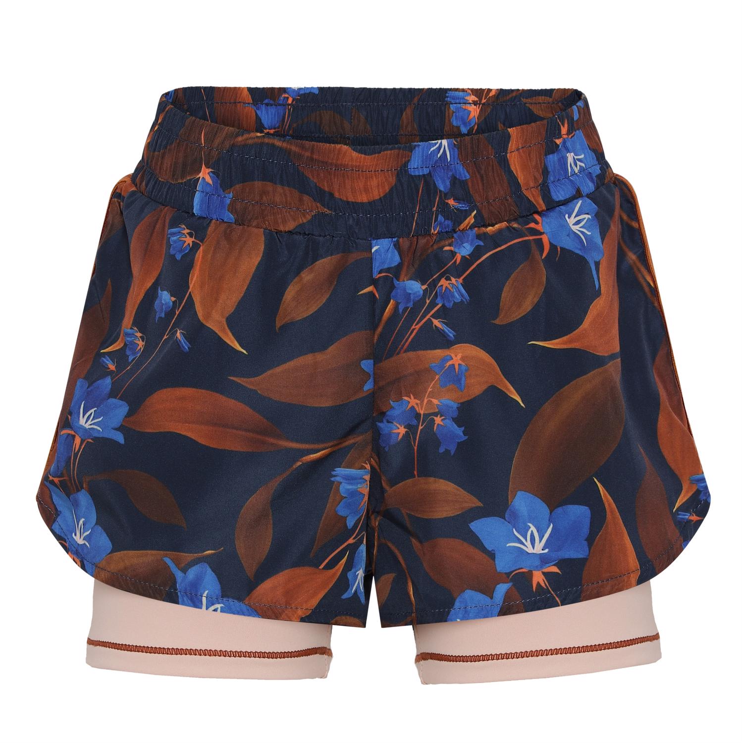 Omari er et par to-delte træningsshorts, hvor yder shortsene er mørkeblå med print af brune blade og blomster, mens de inderste shorts er sart rosa. Omari sikrer den helt rette comfort og fleksibilitet og sørger for, at der ikke er nogen hindring for bevægeligheden. Disse shorts er en del af Molo's sportskollektion, som er med til at binde mode og sport tættere sammen. Kombiner Omari med en af Molo's toppe for en komplet sporty look. Molo’s sportskollektion er fremstillet med en unik high-performance teknologi kaldet HeiQ Smart Temp, der understøtter kroppens naturlige nedkøling. Kølefunktionen aktiveres, når du er varm og svedig. Kølefunktionen deaktiveres, når kroppen er nedkølet. HeiQ Smart Temp sikrer optimal komfort og ydeevne. Testet uafhængigt som sikkert for huden. .