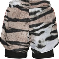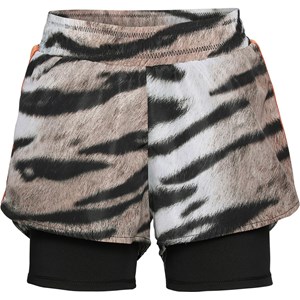 Omari er et par sports shorts i to lag, hvor yder shortsene er med cool tiger print, mens de inder materialet er sort. Omari sikrer den helt rette comfort og fleksibilitet og sørger for, at der ikke er nogen hindring for bevægeligheden. Disse shorts er en del af Molo's sportskollektion, som er med til at binde mode og sport tættere sammen. Kombiner Omari med en af Molo's toppe for en komplet sporty look. Molo’s sportskollektion er fremstillet med en unik high-performance teknologi kaldet HeiQ Smart Temp, der understøtter kroppens naturlige nedkøling. Kølefunktionen aktiveres, når du er varm og svedig. Kølefunktionen deaktiveres, når kroppen er nedkølet. HeiQ Smart Temp sikrer optimal komfort og ydeevne. Testet uafhængigt som sikkert for huden. .