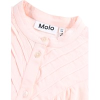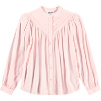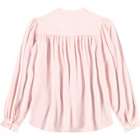 Lyserød skjorte i viskose. Skjorten har knaplukning foran og ved ærmer samt flotte paneler ved kraven. Skjorten har masser af rynk ved både krop og ærmer, hvilket skaber et flot fald.