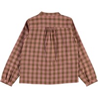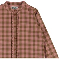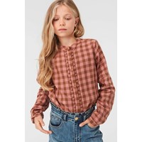 Reanna er en ternet skjorte i rosa og brun. Skjorten har knappelukning på fronten med en lille flæsekant på hver side.