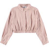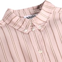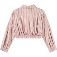 Lyserød skjorte i blød viskose med lodrette striber, klassisk krave, knaplukning foran og elastik i bunden for en løs silhuet.