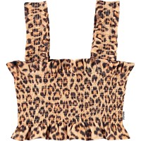 Gepardprintet croptop i økologisk bomuld med smock-effekt, flæsekant og brede stropper. Kombinér toppen med matchende bukser for et komplet sæt.