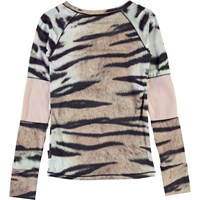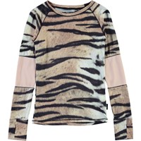 Odelia er en langærnmet sports bluse i cool tiger print med rosa detaljer på ærmerne. Odelia er en del af Molo's sportskollektion, som er med til at binde mode og sport tættere sammen. Blusen er comfortabel og er lavet af tekniske materialer, der gør at den kan bruges både når intensiteten er høj eller når der bare skal slappes af. Molo’s sportskollektion er fremstillet med en unik high-performance teknologi kaldet HeiQ Smart Temp, der understøtter kroppens naturlige nedkøling. Kølefunktionen aktiveres, når du er varm og svedig. Kølefunktionen deaktiveres, når kroppen er nedkølet. HeiQ Smart Temp sikrer optimal komfort og ydeevne. Testet uafhængigt som sikkert for huden. .