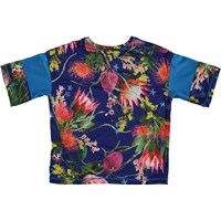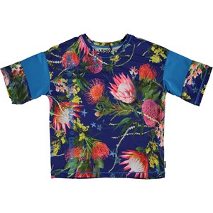 Odessa er en blomstret t-shirt med en behagelig og bred pasform. T-shirten har en bred koral farvet stribe på hvert ærme. Odessa er en del af Molo's nye sportskollektion, som er med til at binde mode og sport tættere sammen. T-shirten er comfortabel og er lavet af tekniske materialer, der gør at den kan bruges både når intensiteten er høj eller når der bare skal slappes af. Molo’s sportskollektion er fremstillet med en unik high-performance teknologi kaldet HeiQ Smart Temp, der understøtter kroppens naturlige nedkøling. • Kølefunktionen aktiveres, når du er varm og svedig • Kølefunktionen deaktiveres, når kroppen er nedkølet. • HeiQ Smart Temp sikrer optimal komfort og ydeevne • Testet uafhængigt som sikkert for huden •