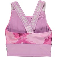 Oliva er en sportstop med rosa blomster print. Toppen har brede lyserøde stropper med tekst, mens toppens bund er rosa. Toppen er perfekt under Molo's sportsjakker. Olivia er en del af Molo's sportskollektion, som er med til at binde mode og sport tættere sammen. Toppen er komfortabel og er lavet af tekniske materialer, der gør at den kan bruges både når intensiteten er høj ellernår der bare skal slappes af. Molo’s sportskollektion er fremstillet med en unik high-performance teknologi kaldet HeiQ Smart Temp, der understøtter kroppens naturlige nedkøling. Kølefunktionen aktiveres, når du er varm og svedig. Kølefunktionen deaktiveres, når kroppen er nedkølet. HeiQ Smart Temp sikrer optimal komfort og ydeevne. Testet uafhængigt som sikkert for huden. .