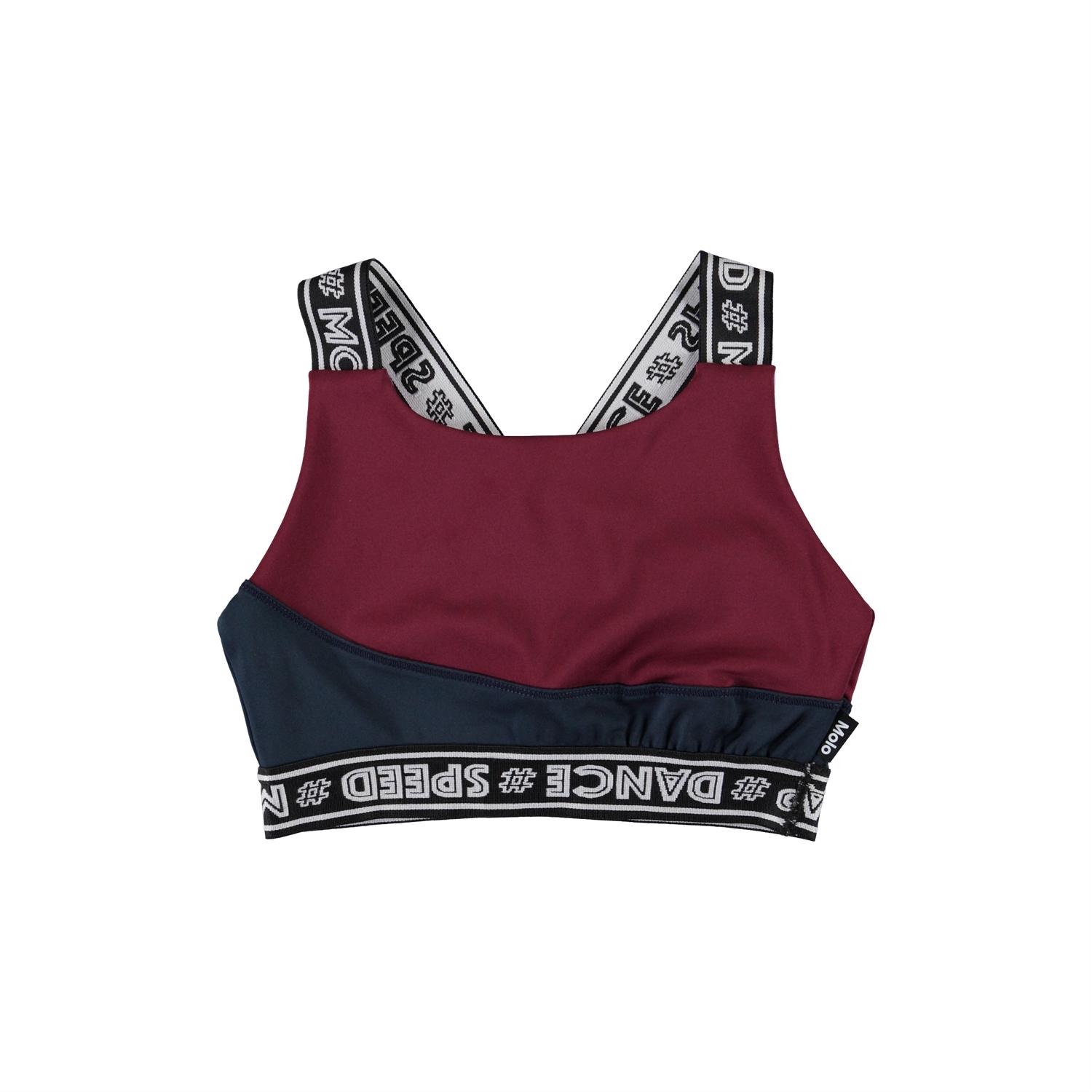 Olivia er en kort top i sort og boardeuax, som har brede stropper med tekst print. . Olivia er en del af Molo's sportskollektion, som er med til at binde mode og sport tættere sammen. Toppen er komfortabel og er lavet af tekniske materialer, der gør at den kan bruges både når intensiteten er høj eller når der bare skal slappes af. Molo’s sportskollektion er fremstillet med en unik high-performance teknologi kaldet HeiQ Smart Temp, der understøtter kroppens naturlige nedkøling. Kølefunktionen aktiveres, når du er varm og svedig. Kølefunktionen deaktiveres, når kroppen er nedkølet. HeiQ Smart Temp sikrer optimal komfort og ydeevne. Testet uafhængigt som sikkert for huden. .