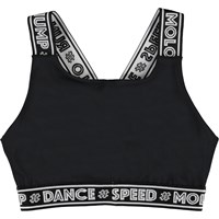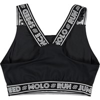 Oliviana er en kort top i sort, som har brede stropper med tekst print. Toppen kan bruges som en funktionel top eller til at skabe en cool detalje under Molo's sportsjakke. Oliviana er en del af Molo's nye sportskollektion, som er med til at binde mode og sport tættere sammen. Toppen er komfortabel og er lavet af tekniske materialer, der gør at den kan bruges både når intensiteten er høj eller når der bare skal slappes af. Molo’s sportskollektion er fremstillet med en unik high-performance teknologi kaldet HeiQ Smart Temp, der understøtter kroppens naturlige nedkøling. • Kølefunktionen aktiveres, når du er varm og svedig • Kølefunktionen deaktiveres, når kroppen er nedkølet. • HeiQ Smart Temp sikrer optimal komfort og ydeevne • Testet uafhængigt som sikkert for huden •