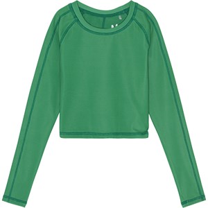Grøn langærmet sportsbluse med synlige syninger. Blusen har en kort pasform og en rund halsudskæring. Toppen er comfortabel og er lavet af tekniske materialer, der gør at den kan bruges både når intensiteten er høj eller når der skal slappes af. Molo’s sportskollektion er fremstillet med en unik high-performance teknologi kaldet HeiQ Smart Temp, der understøtter kroppens naturlige nedkøling. Kølefunktionen aktiveres, når du er varm og svedig. Kølefunktionen deaktiveres, når kroppen er nedkølet. HeiQ Smart Temp sikrer optimal komfort og ydeevne. Testet uafhængigt som sikkert for huden. .