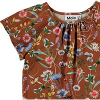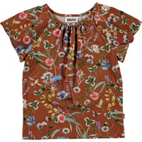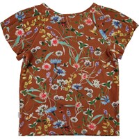 Rachel er en brun t-shirt med print af vilde blomster og insekter. Blusen har brede korte ærmer, som falder flot.